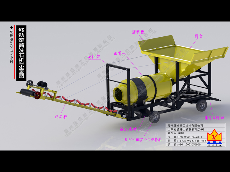 移動滾筒洗石機價格低,洗石效率高,是一款實用型移動式洗砂石設備,由青州冠誠重工機械有限公司生產研發(fā),該機械小巧緊湊,結構簡單,轉場方便,維修故障低,使用壽命長。